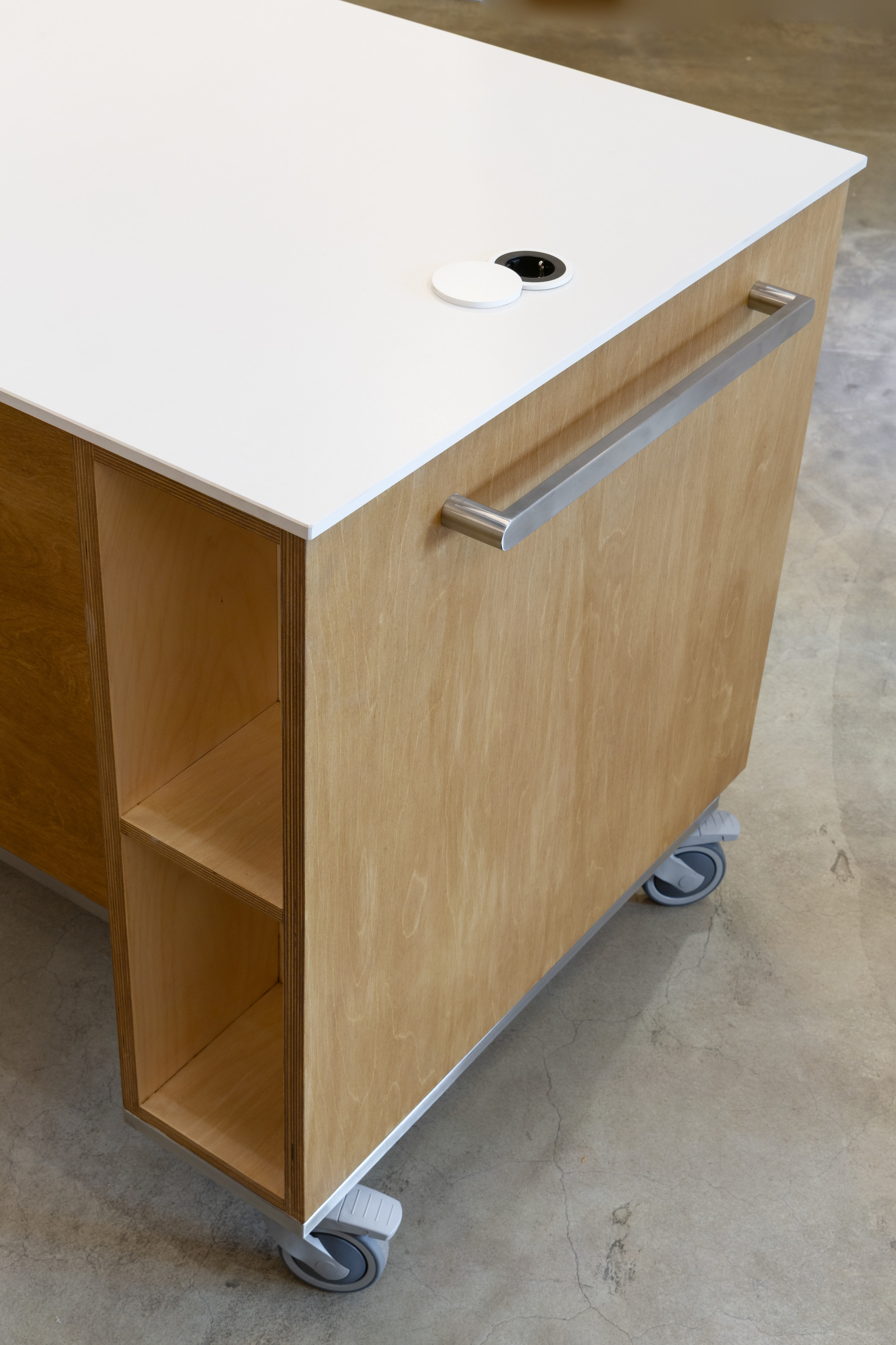 이동식 가구는 바퀴와 손잡이의 디자인이 중요합니다.