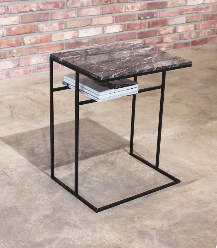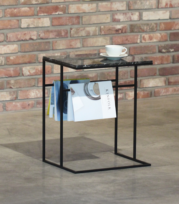 DESCRIPTION Dimensions : 500 (W) x 380(D) x600(H) Top Materials : Mable_Grigio Carnico Finish : Mable_Polishing Leg Materials: Steel _ Matt Black, Power Coated Steel *대리석 뒷면은 가공되어 있지 않아 아랫면은 광택이 없습니다.