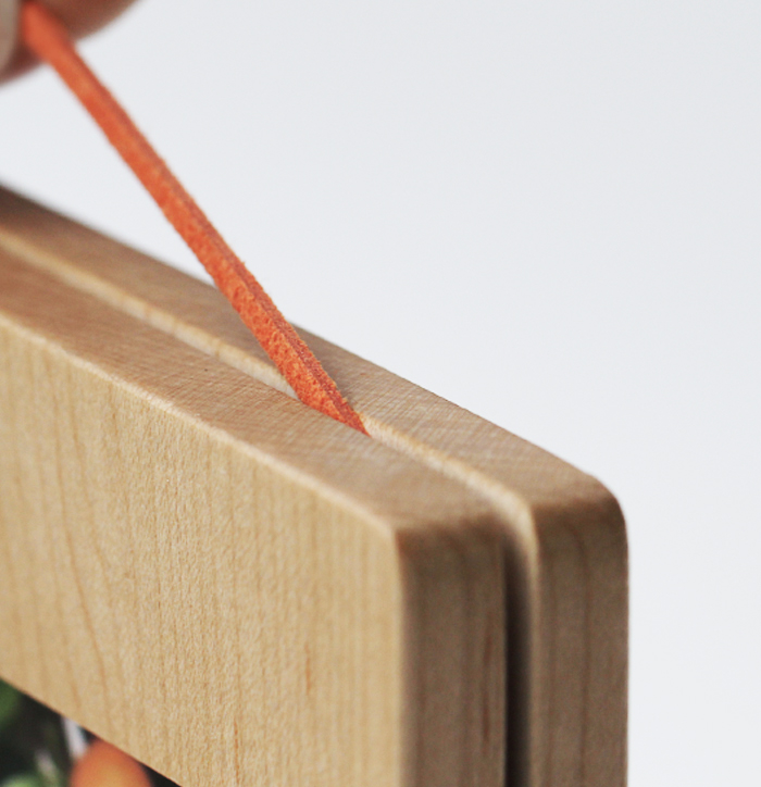 마음에 드는 끈을 끼워 벽면에 걸 수도 있고 책상위나 선반위에 세워서도 사용 가능합니다.