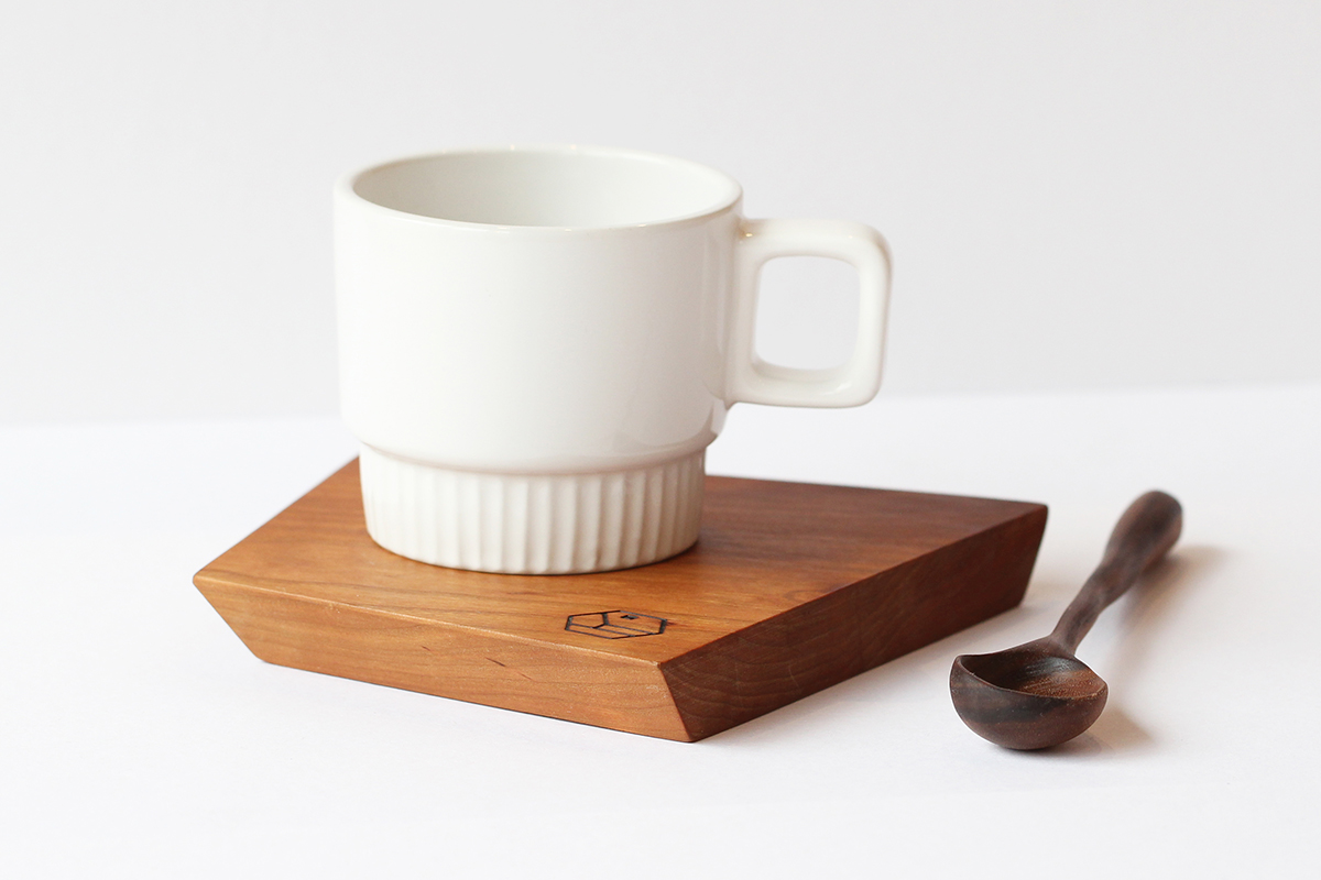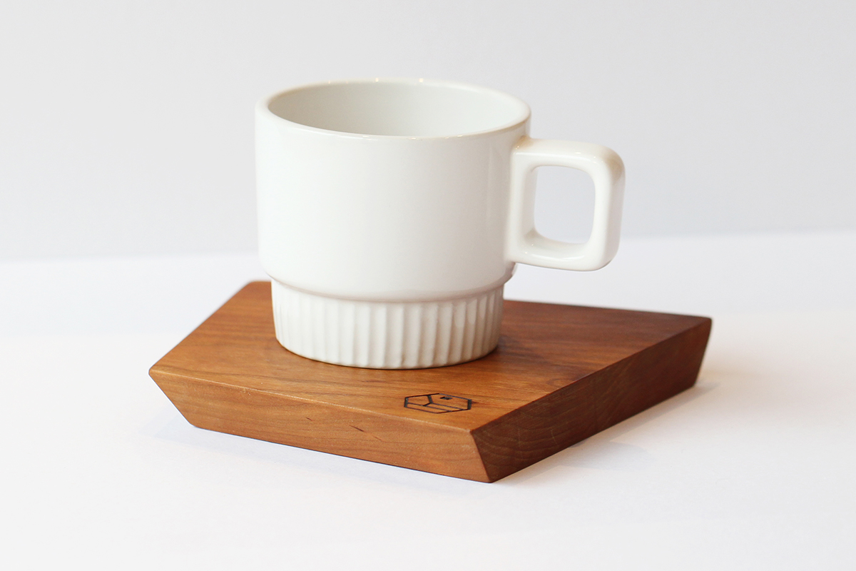 통원목으로 비정형 사선라인으로 재단하고, 옆면에도 사선으로 각을 주어 손으로 잡기 편하게 만든 티코스터입니다.