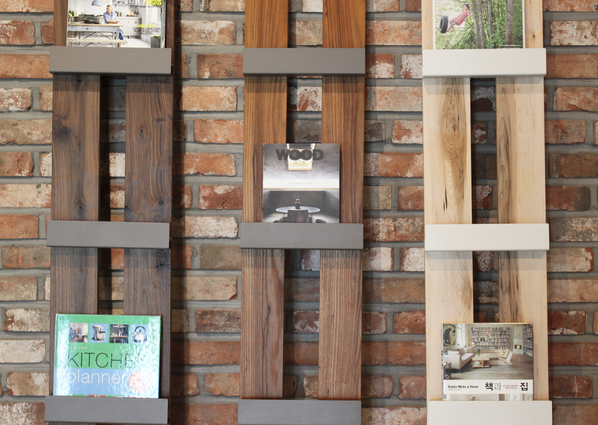 자주보는 잡지, 좋아하는 책 등을 수납하는 벽면 인테리어용 책꽂이로