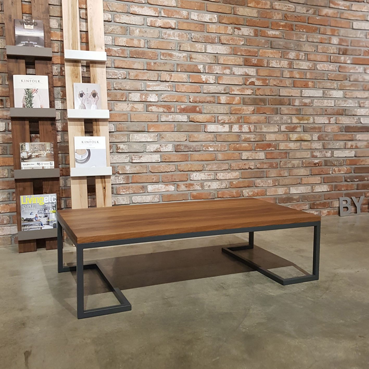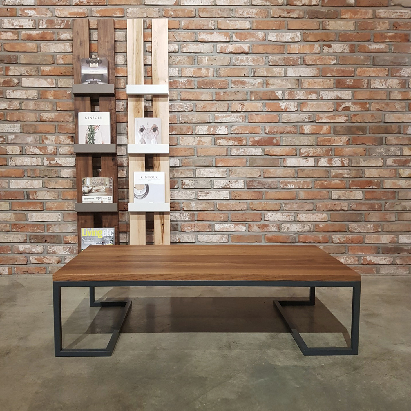 날렵하게 각을 살린 철제다리가 멋진 소파 테이블 입니다.