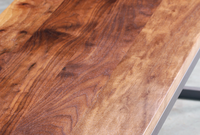 | WALNUT 월넛_북미산 짙은 고동색에 가까운 색감으로 묵직하고 고급스러운 느낌을 줍니다. 중후한 느낌을 내는 가구에 많이 사용되는 목재 중 하나입니다. 조직이 치밀해 굽거나 틀어지는 일이 적으며 충격에도 강합니다. 악기의 재료로도 많이 사용되는 고급 목재입니다. |