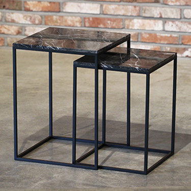 DESCRIPTION Dimensions : S_350 (W) x 350(D) x 470(H)mm L_400 (W) x 400(D) x 550(H)mm Top Materials : Mable_Grigio Carnico Finish : Mable_Polishing Leg Materials: Steel _ Matt Black, Power Coated Steel *대리석 뒷면은 가공되어 있지 않아 아랫면은 광택이 없습니다.