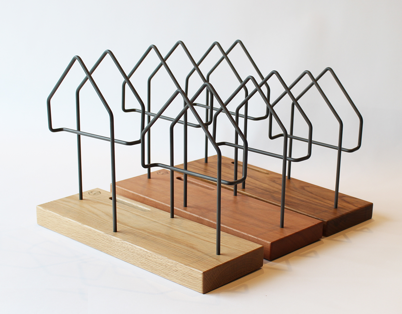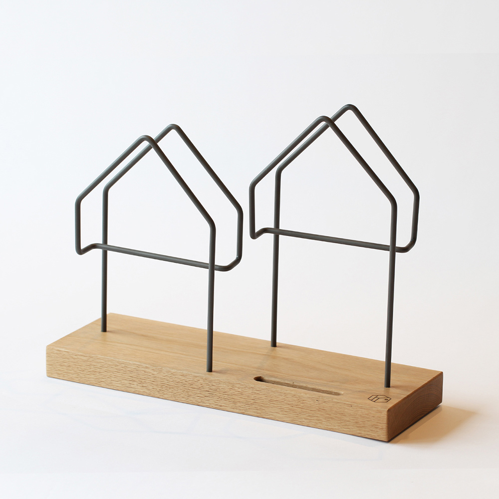 원목 바닥판에 집 모양으로 작업한 철제봉을 연결해